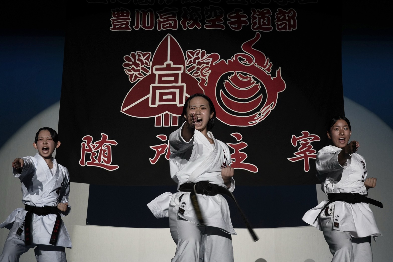 空手道部はインターハイ・センバツ出場を目標に、日々稽古に励んでいます。