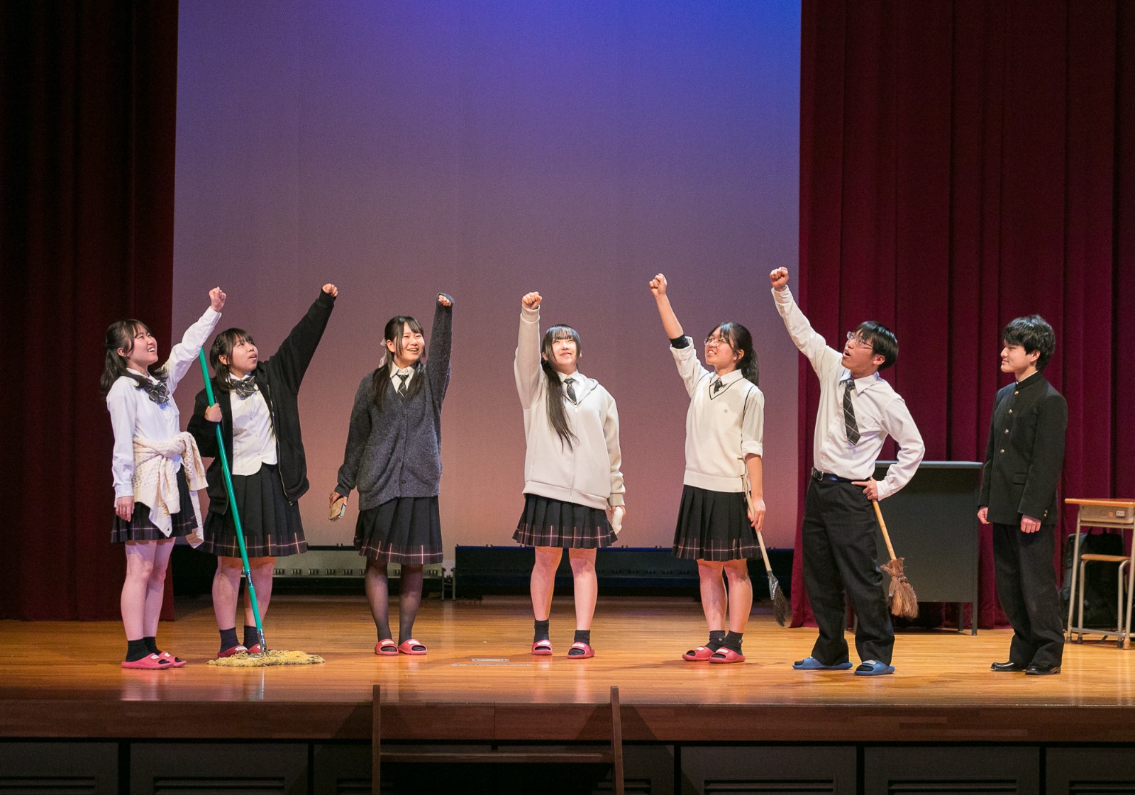 キャスト(俳優)、演出、舞台監督、音響、照明、衣装・メイク・小道具、舞台装置と、興味に応じて役を持ち、1つの劇をすべて自分たちで創り上げます。