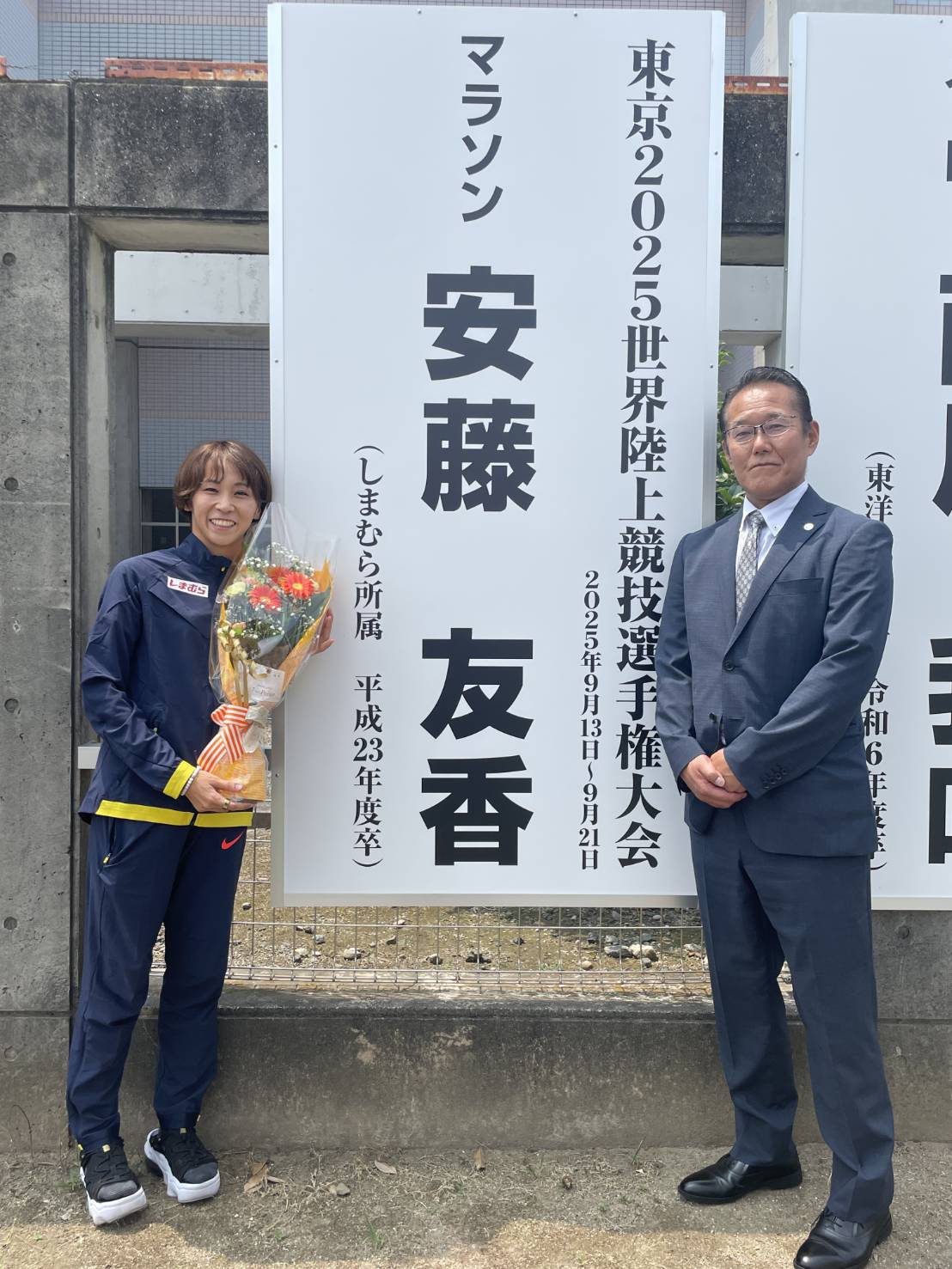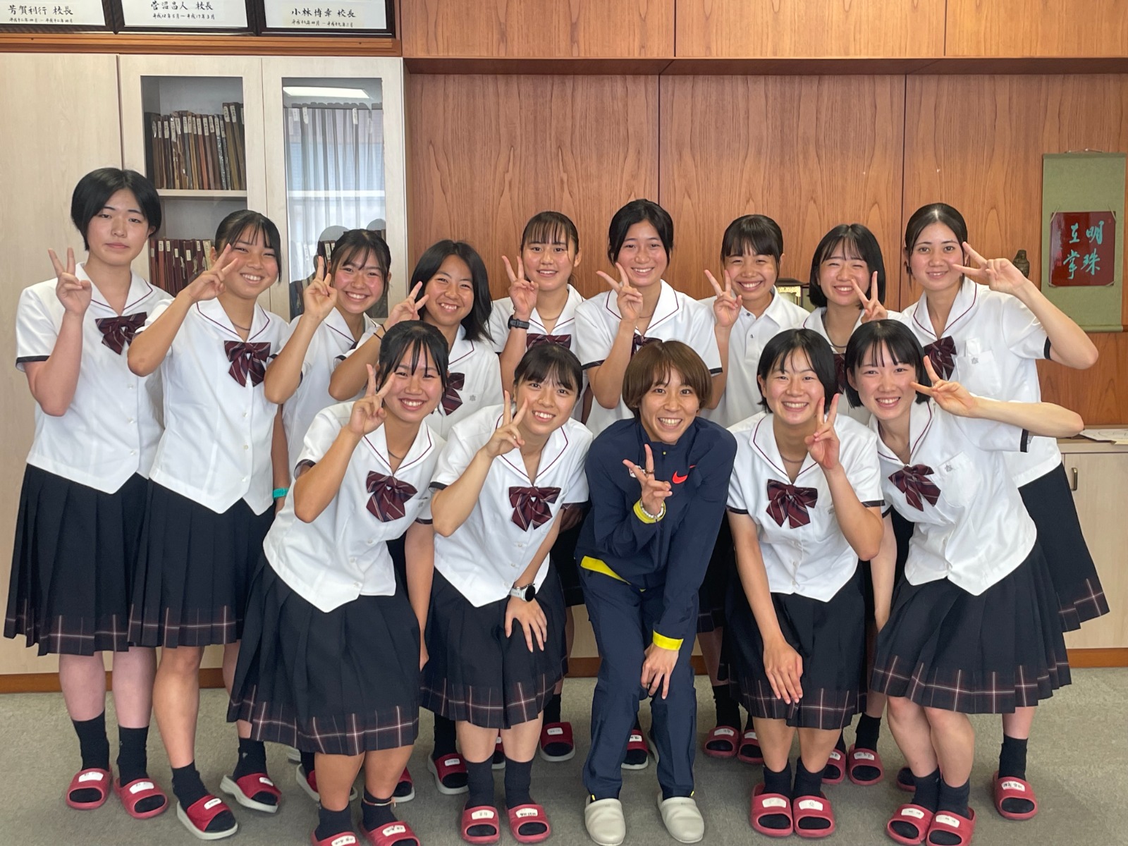7月9日(水)、鳳翔閣にて、2025世界陸上東京大会マラソン日本代表に内定した安藤友香選手(2012年度卒業)の壮行会を全校生徒で実施しました。
