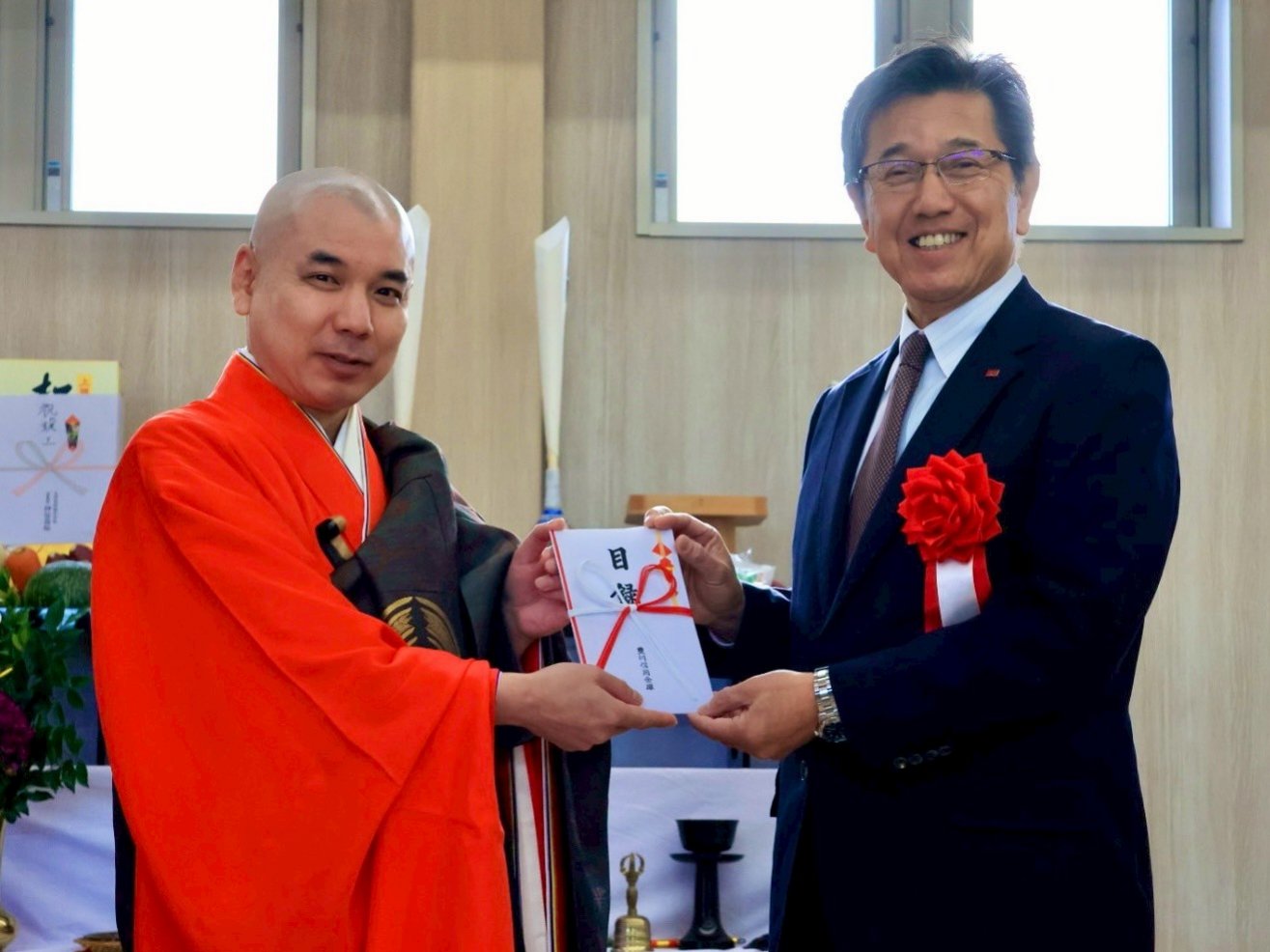 目録贈呈では、豊川信用金庫理事長・真田光彦様より、福山理事長へ、竣工記念として時計2基の目録が手渡されました。来賓挨拶では、「部活動にはさまざまな目的があるが、挑戦する心、苦しみに負けない強い心、仲間を大切にする心を育んでほしい。この素晴らしい躍進館で、大きく成長してくれることを期待している」と、生徒たちへの温かな激励の言葉を頂戴しました。