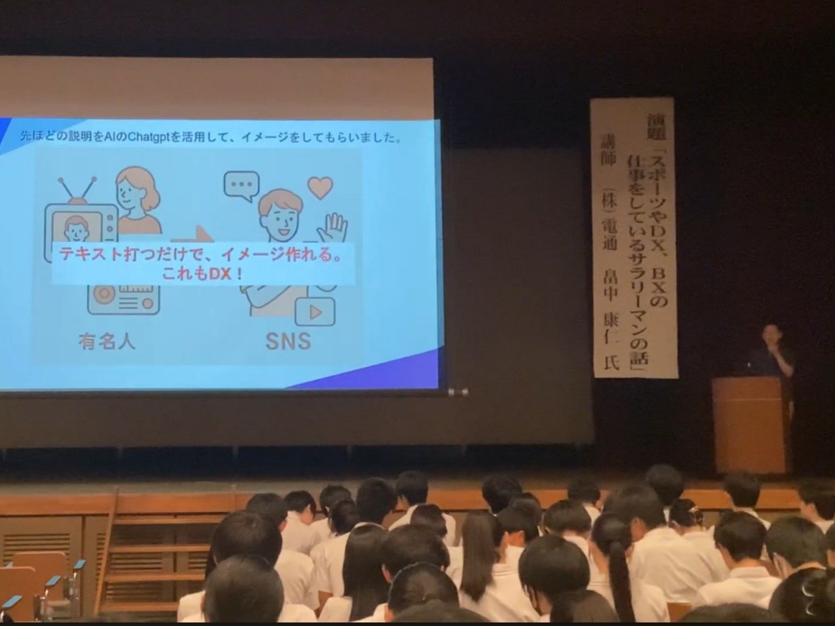 【1年生Ⅱ類、2年生Ⅱ・Ⅲ類 講演聴講】『スポーツやDX、BXの仕事をしているサラリーマンの話』 株式会社電通の畠中康仁(はたなか やすひと)氏