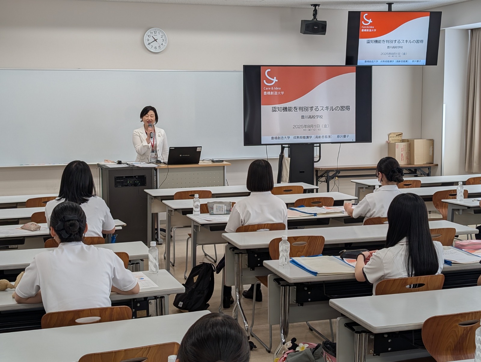 続いて、看護学科の授業では、認知機能の障がいについての理解を深め、診断方法をペアワークで実践するなど、看護の専門性に触れる貴重な時間となりました。
