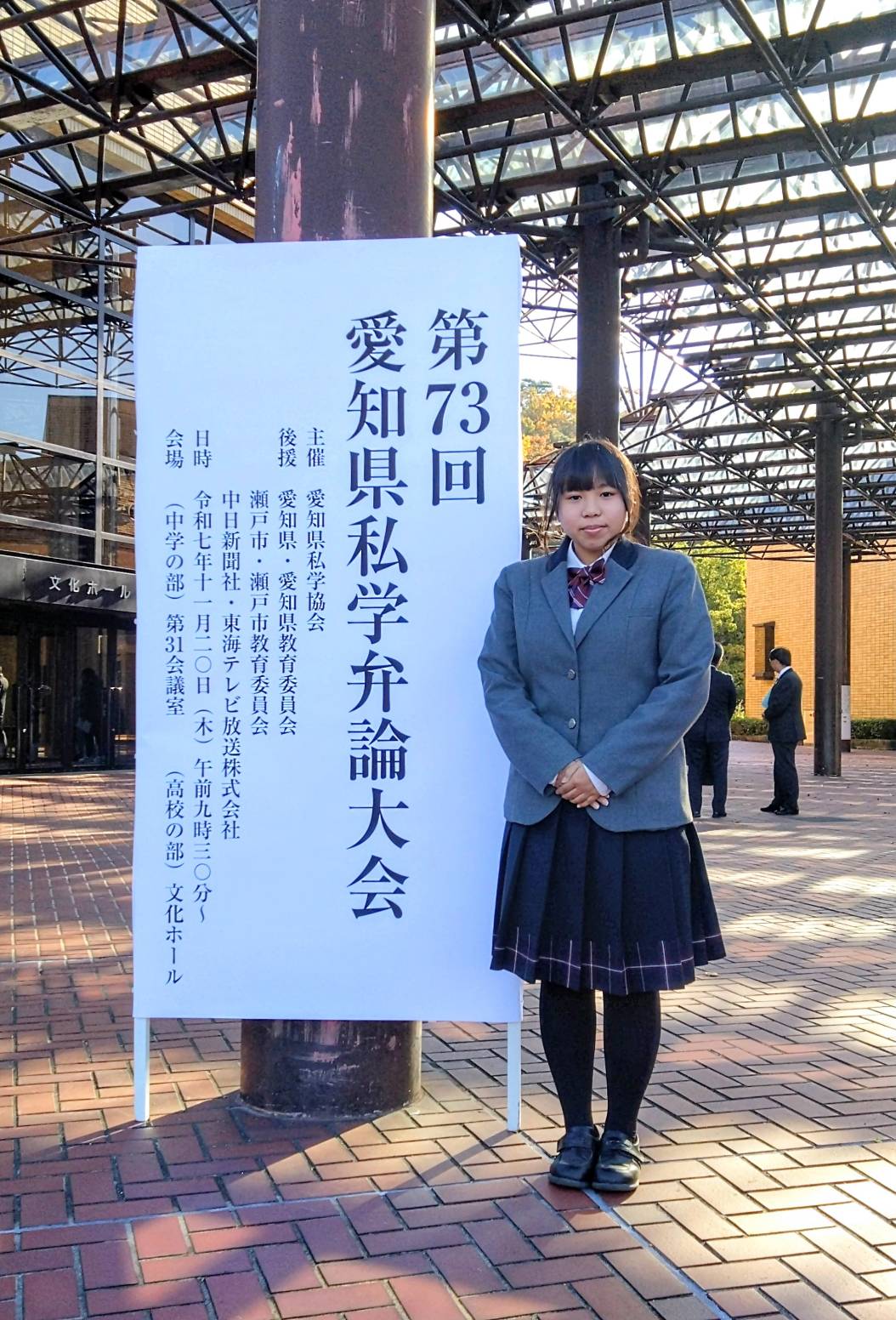 11月20日(木)、瀬戸市文化センターにて開催された「第73回愛知県私学弁論大会」に、本校代表として2年4組・加藤美来さん(御津中学校出身)が出場しました。