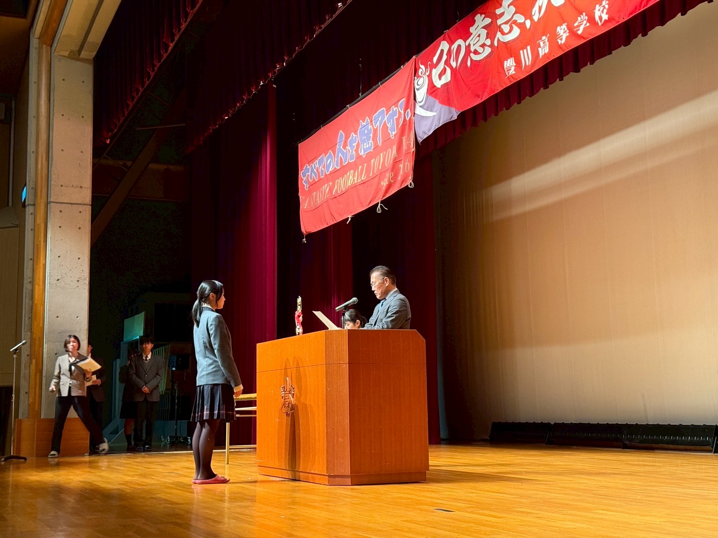 本行事は、これまでの大会で優秀な成績を収めた部活動を改めて顕彰するとともに、全国大会へ出場する部活動の健闘を全校で後押しすることを目的として行われました。