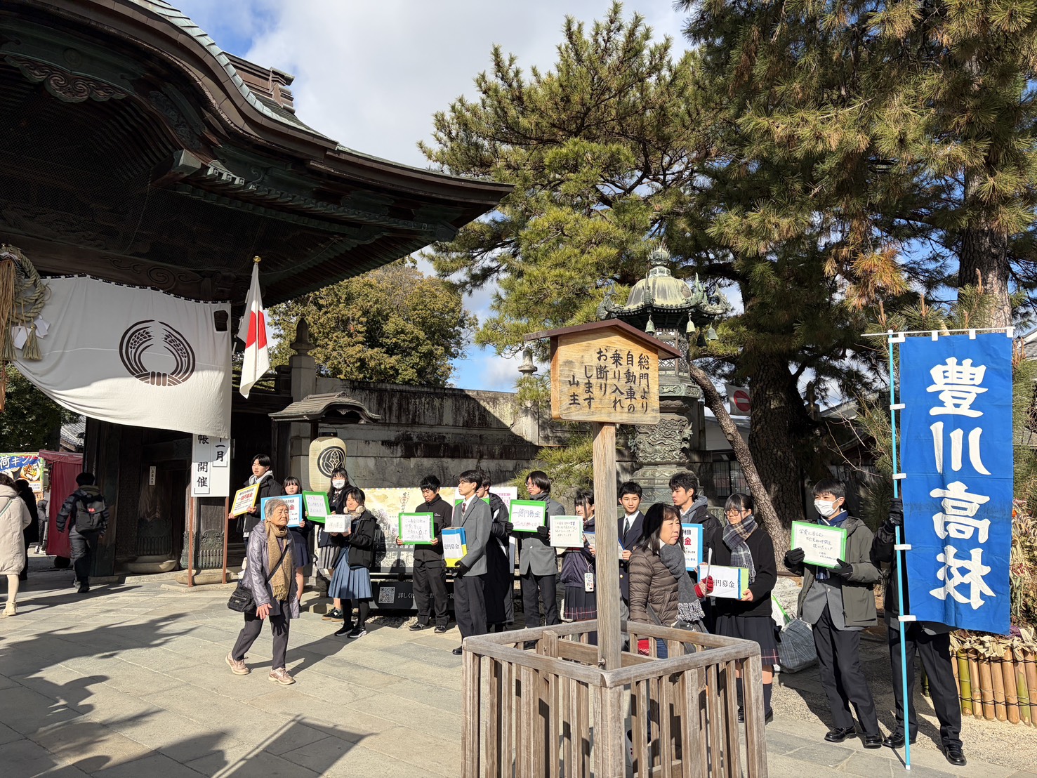 交流会後は、豊川稲荷門前にて一億円募金を行いました。