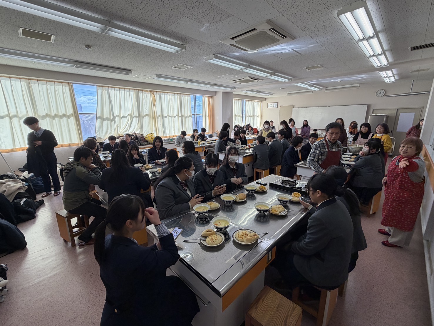 活動終了後には、愛知父母懇談会の皆さまが用意してくださった温かいシチューをご馳走になりました。冷えた身体に染み渡る一杯と、支えてくださる方々の想いに触れ、心まで満たされるひとときとなりました。
