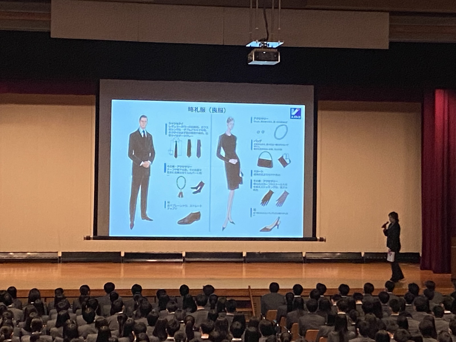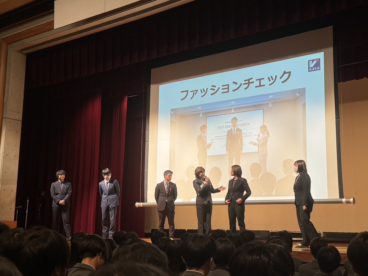 講師としてお迎えしたのは、オーダーメイドスーツ専門店 バルコンスズトヨ の皆さま。長年にわたり培われてきた豊富な経験と確かな知識をもとに、社会で信頼を得るための“装いの本質”について、丁寧にご講話いただきました。