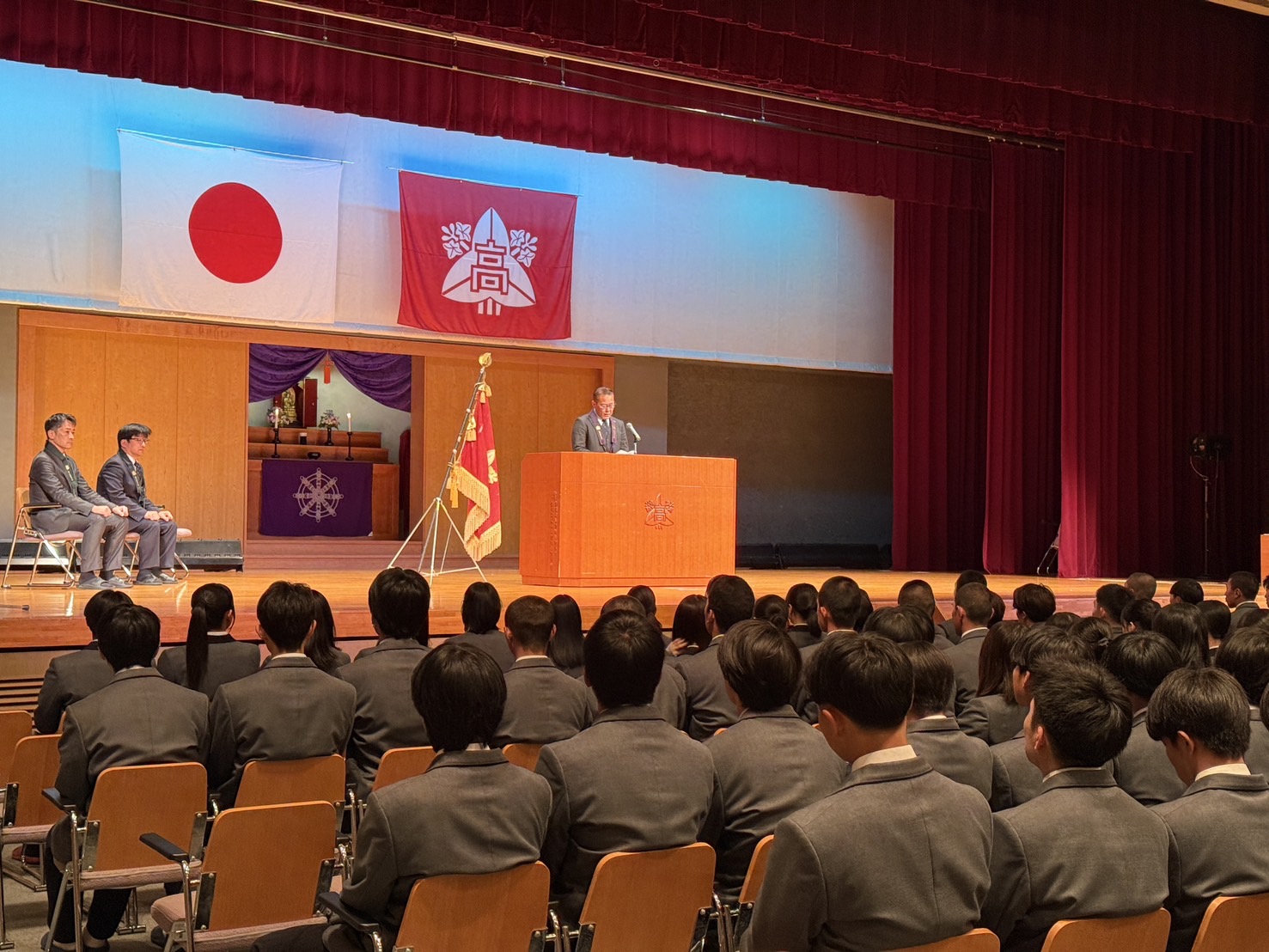 その後、先生方一人ひとりから、生徒たちへの想いが込められた言葉が贈られ、会場は静かな感動に包まれました。言葉の一つひとつに重みがあり、生徒たちは真剣な表情で耳を傾けていました。