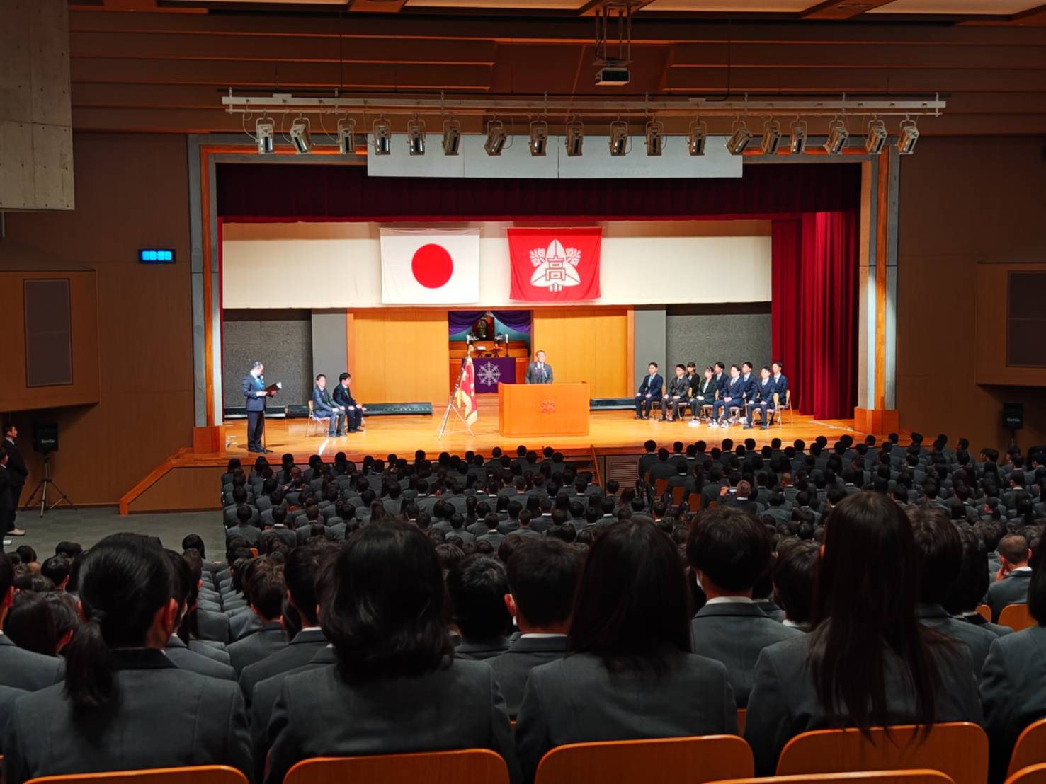 続いて職員紹介が行われました。校長の紹介を皮切りに、学年所属外の学校運営の中核を担う職員が紹介され、それぞれが大きな拍手で迎えられました。新たな体制のもと、学校全体で生徒を支えていく意志が感じられる場面となりました。