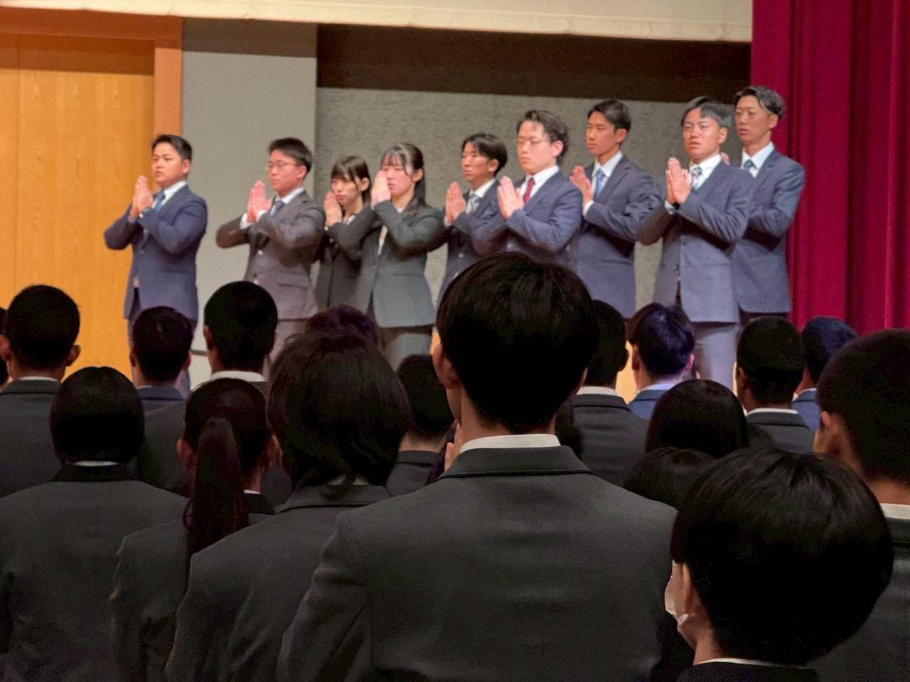 着任者を代表して渋澤先生より、「生徒の皆さんの貴重な時間に関わる責任を感じながら、一緒に青春を共有していきたい」という言葉が述べられました。その一言から、生徒と真剣に向き合う決意が伝わってきました。