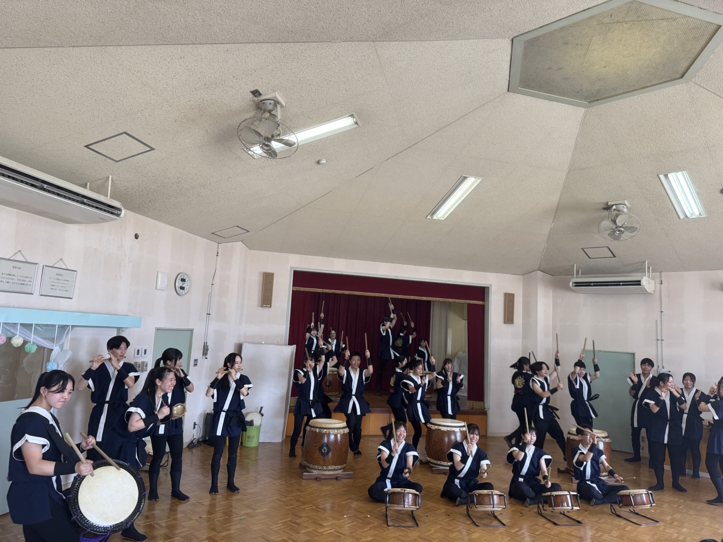 8月6日(火)、本校の和太鼓部とチアリーディング部が、豊川市内の大和保育園を訪問し、演技を披露させていただきました。