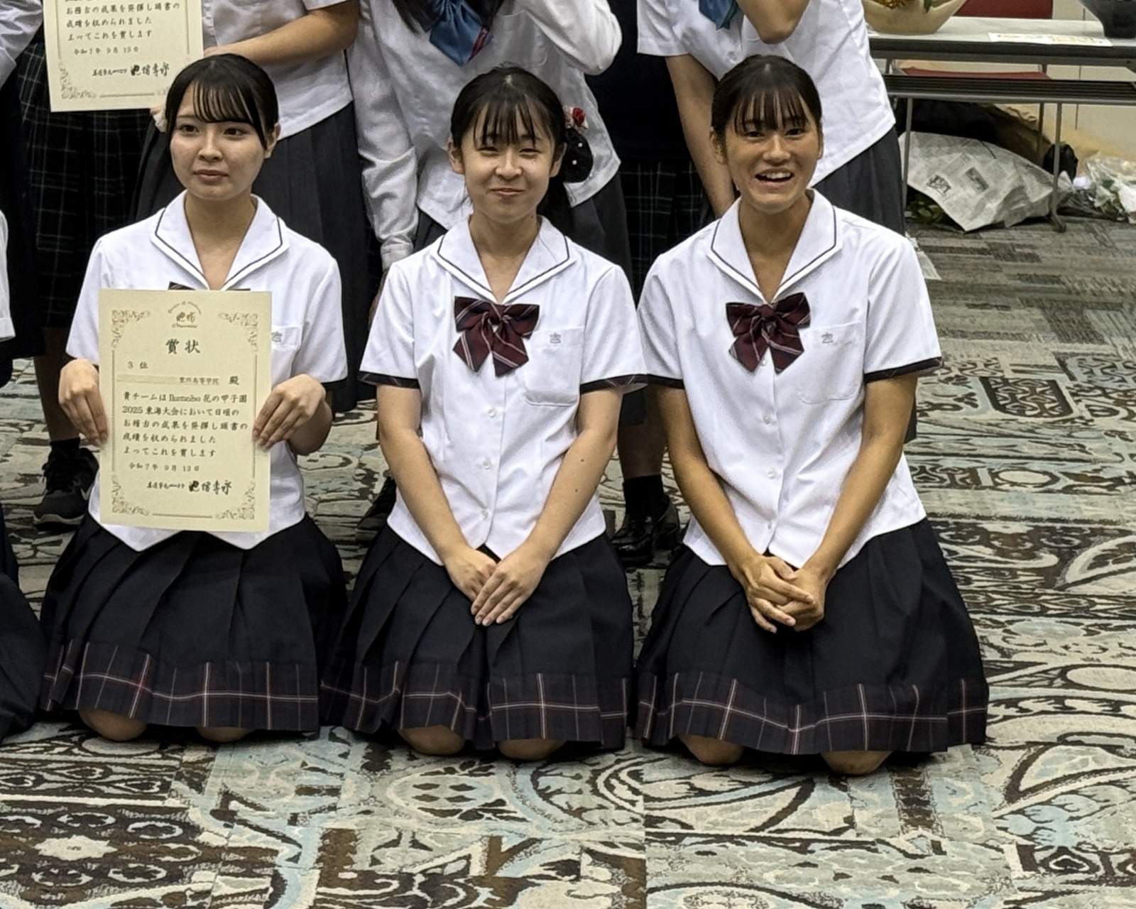 中川葵さん(2年)、武田弥月さん(1年)、鳥山希実さん(1年)が出場し、見事3位に入賞しました。