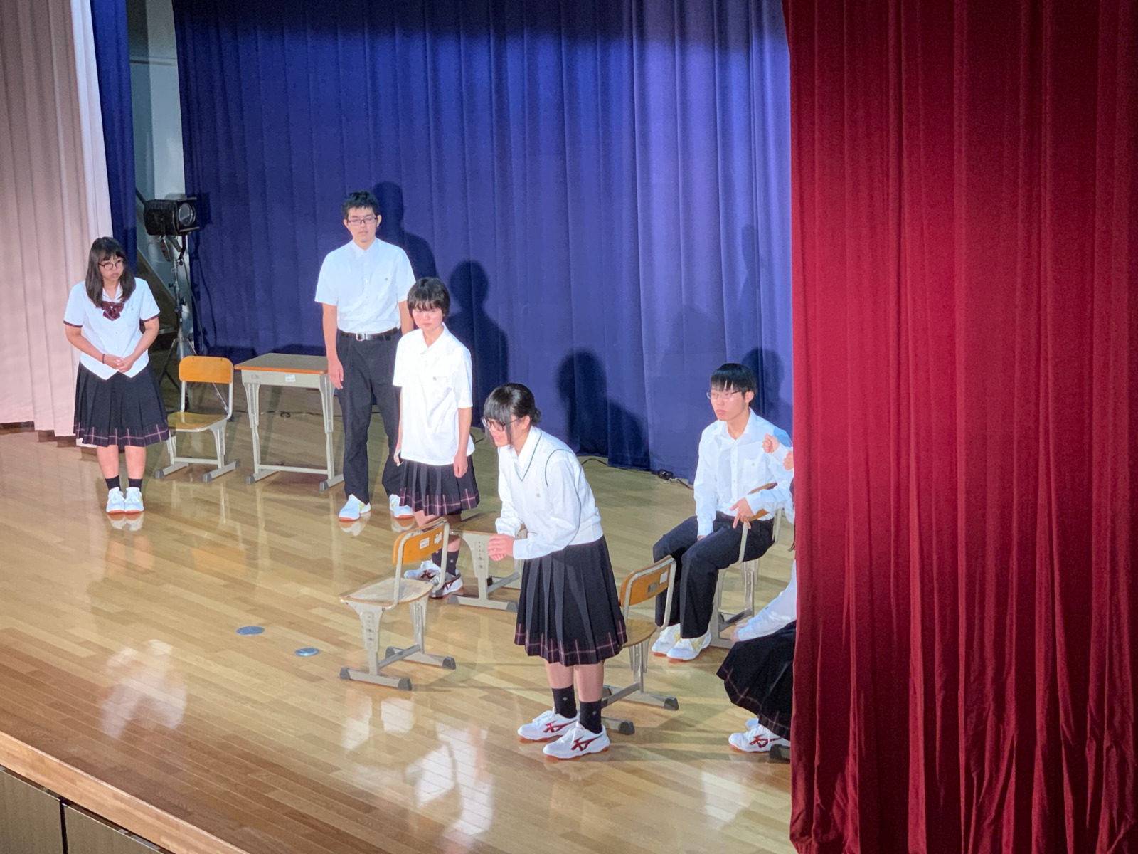 10月21日(火)、豊橋市立石巻小学校において、演劇部が創作劇「すけっちぶっく」を上演しました。本作は、戦後80年を迎える今年、豊川海軍工廠空襲を題材とした平和へのメッセージを込めた作品です。