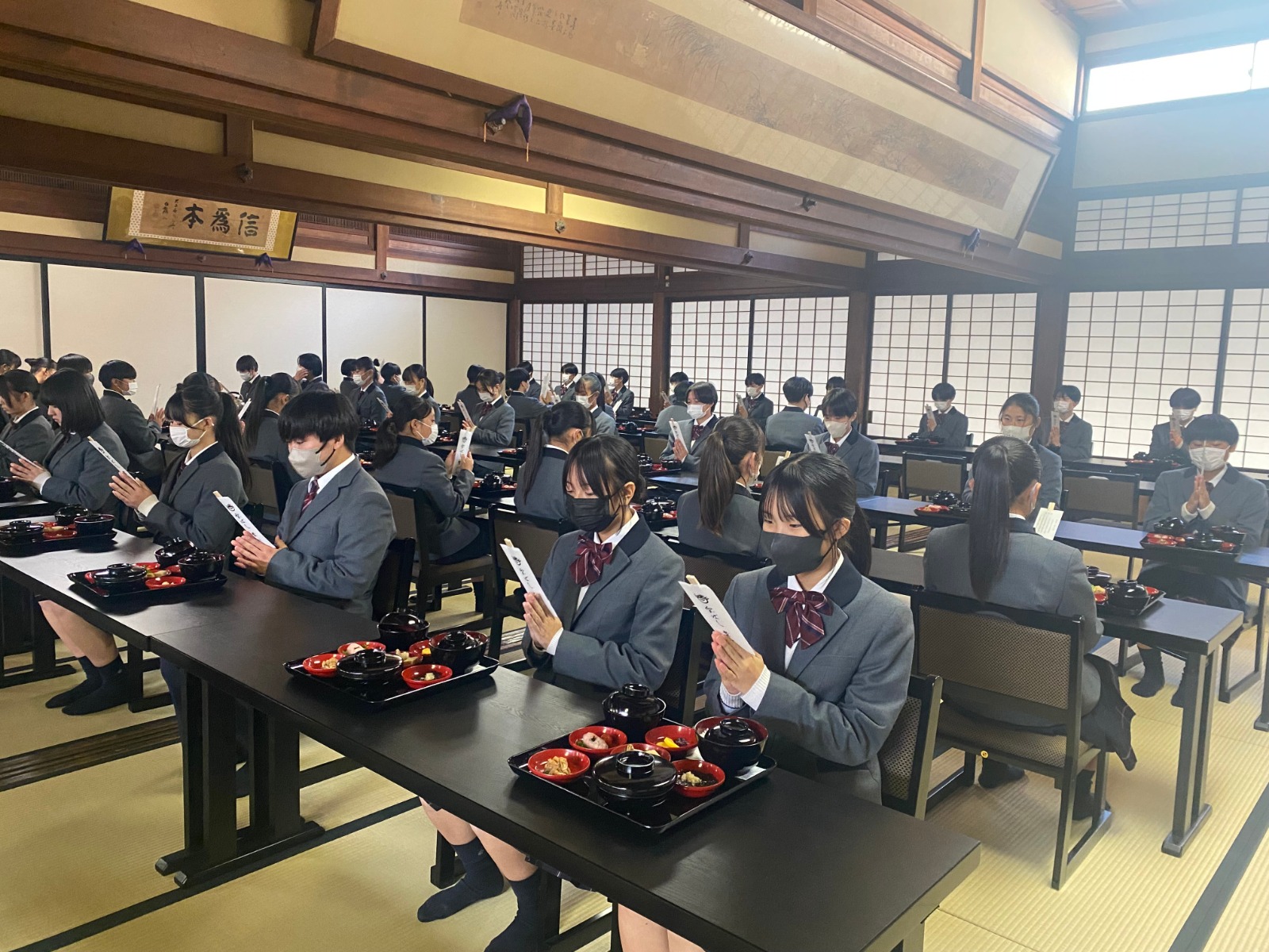 また、さらなる飛躍を願い、精進料理をいただくとともに、選手一人ひとりに必勝への祈りが込められた御守りが授与されました。