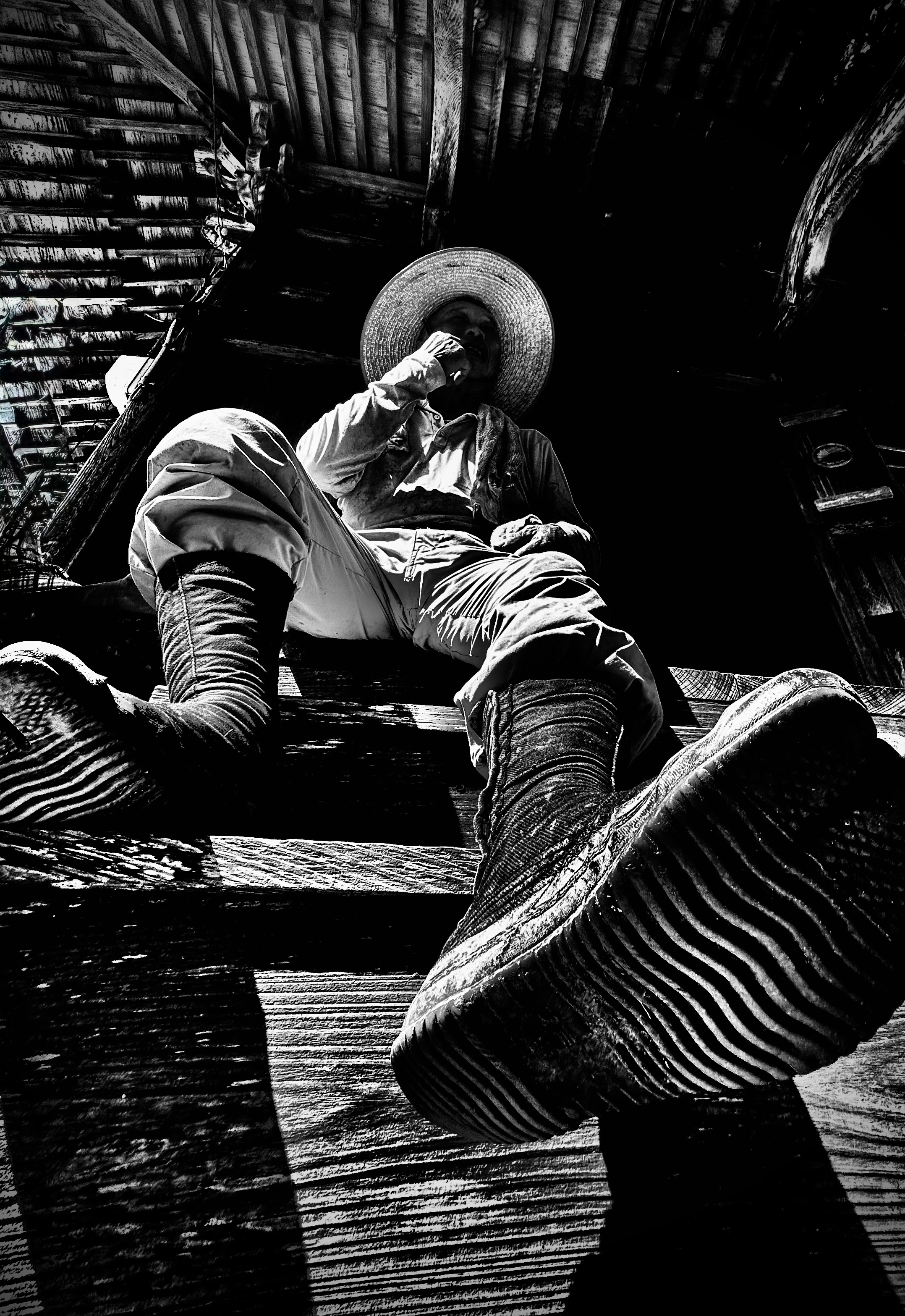 山口玲奈さん(豊川中部中出身)の作品「いっぷく」は、寺院の掃除を終え、ひと息つく男性の姿をローアングルから捉えた一枚です。演出を加えず、被写体そのものが放つ佇まいと力強さを写し取った点が高く評価されました。