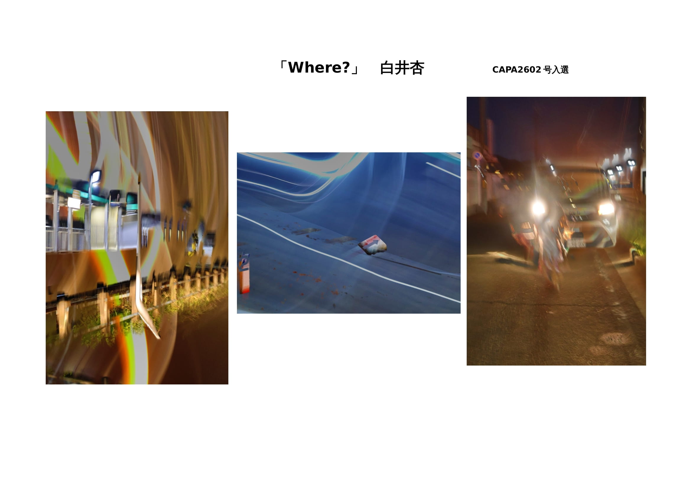 白井杏さん(豊川東部中出身)の作品「Where?」は、最寄りの駅という日常的な風景を、あえてブレを用いて表現した三枚組の作品です。審査員からは