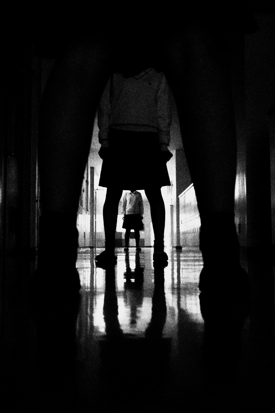 校舎の廊下を舞台に、仲間たちのシルエットを用いて表現した一枚。光と影の対比が、新たな始まりを予感させる力強い作品となっています。