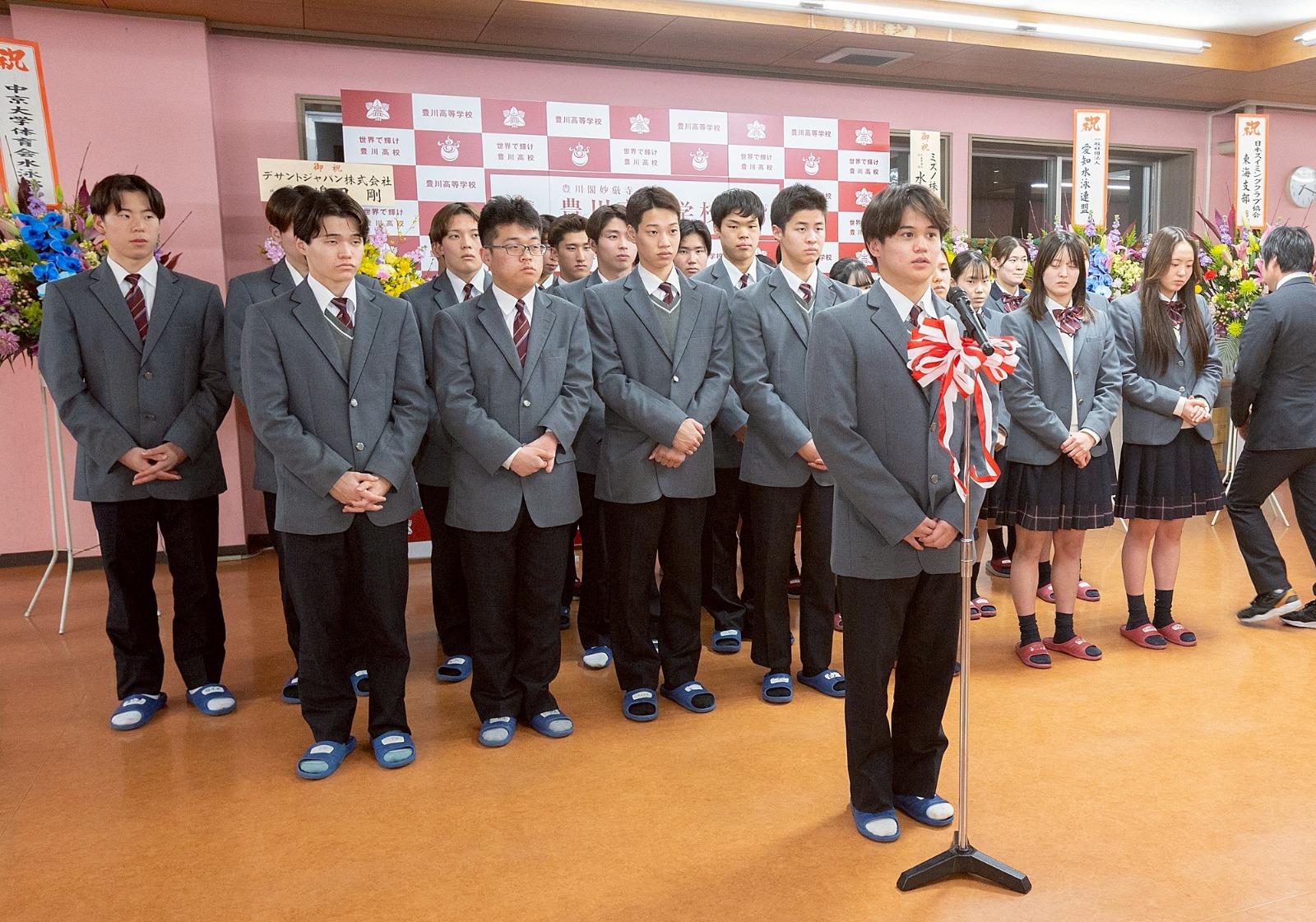 続いて、豊川学園理事長 福山憲隆様よりご挨拶を賜り、選手たちの努力と覚悟を称えていただきました。