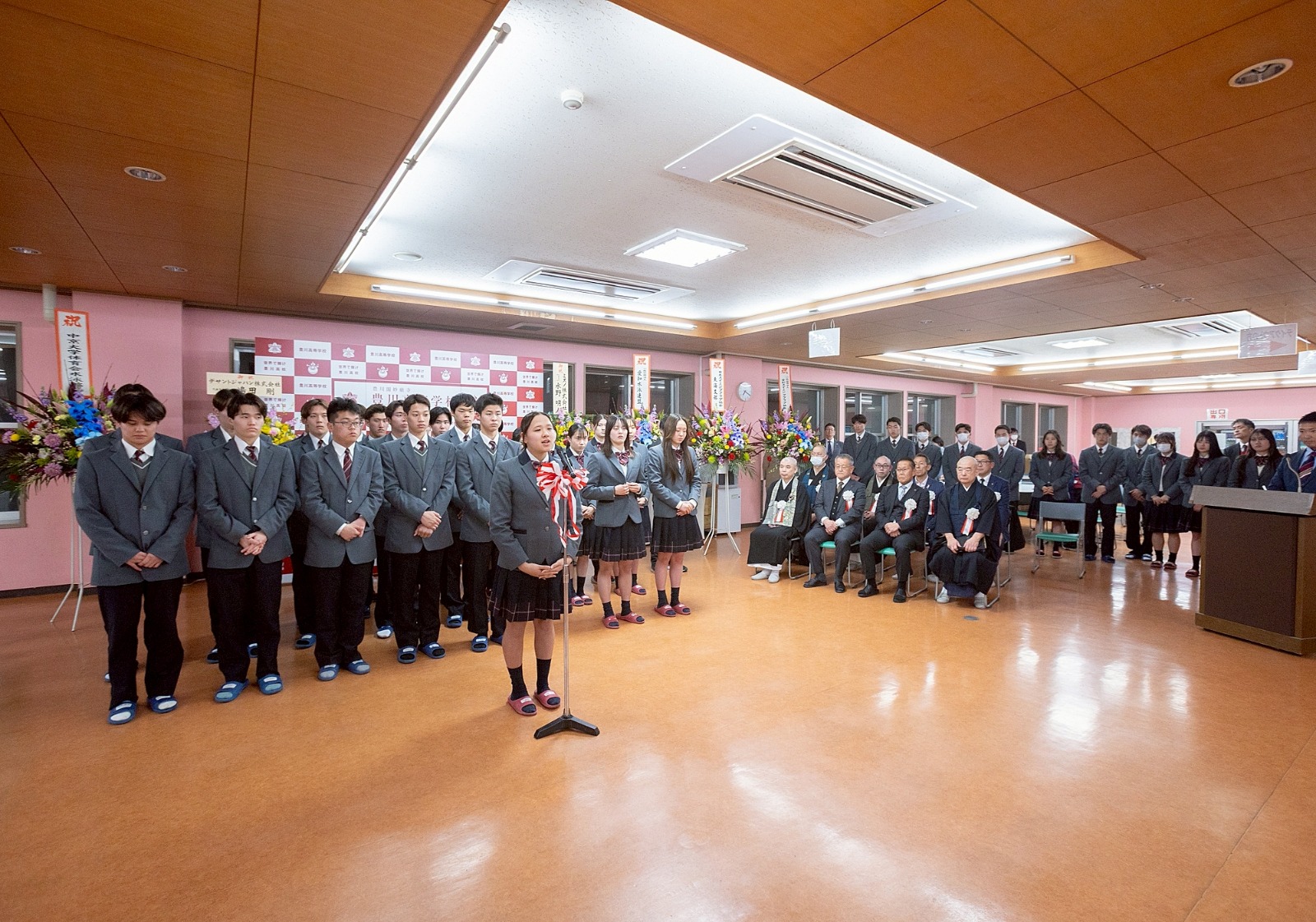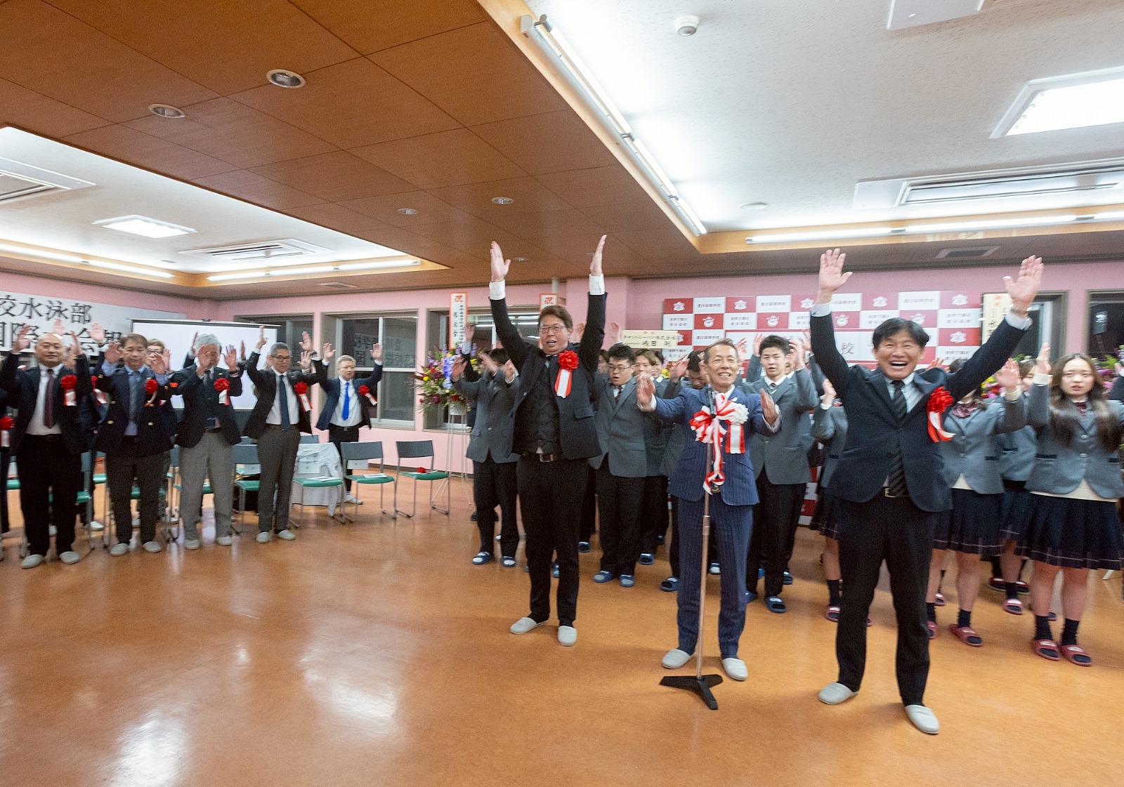 男子監督 堀江剛一からは次年度への展望が語られ、学校長 今泉利昭より全校を代表して祝意と期待が伝えられました。最後は同窓会会長 浅野晋様による万歳三唱で、力強く会を締めくくりました。
