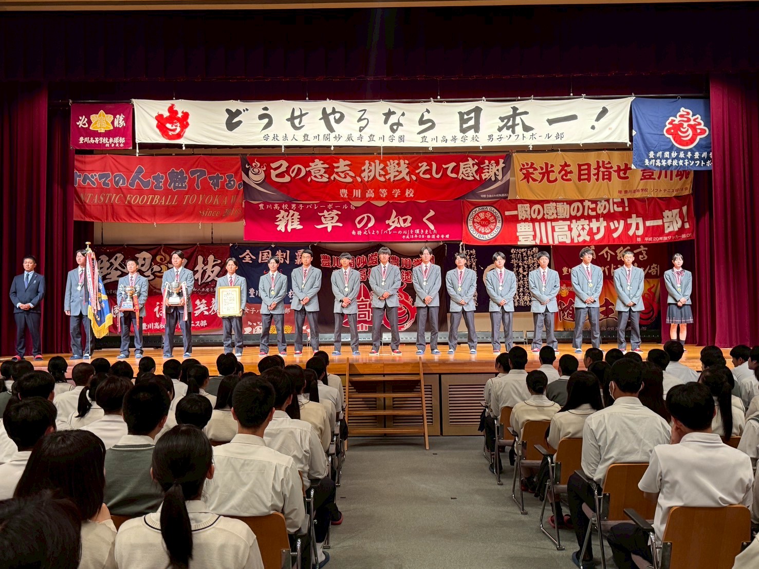 当日は、その栄誉を全校生徒で称え、盛大な拍手の中で報告が行われました。